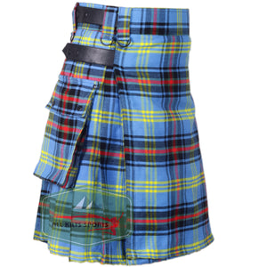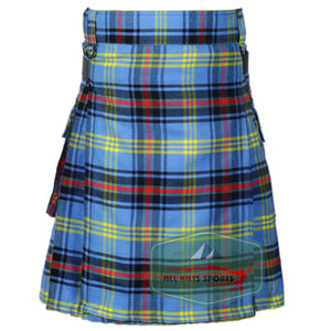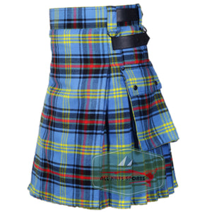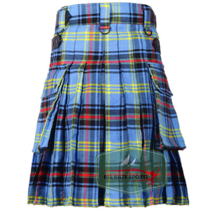 Bell Of Border Tartan Utility Kilt with Leather Straps and Cargo Pockets