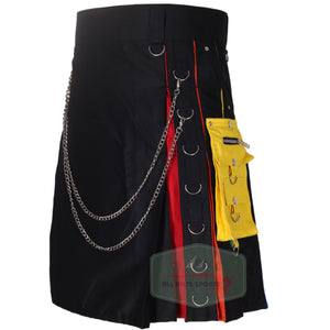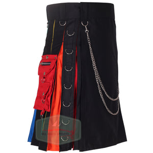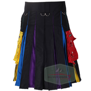 Black Kilt with Stunning Rainbow Pleats and Cargo Pockets for Weddings