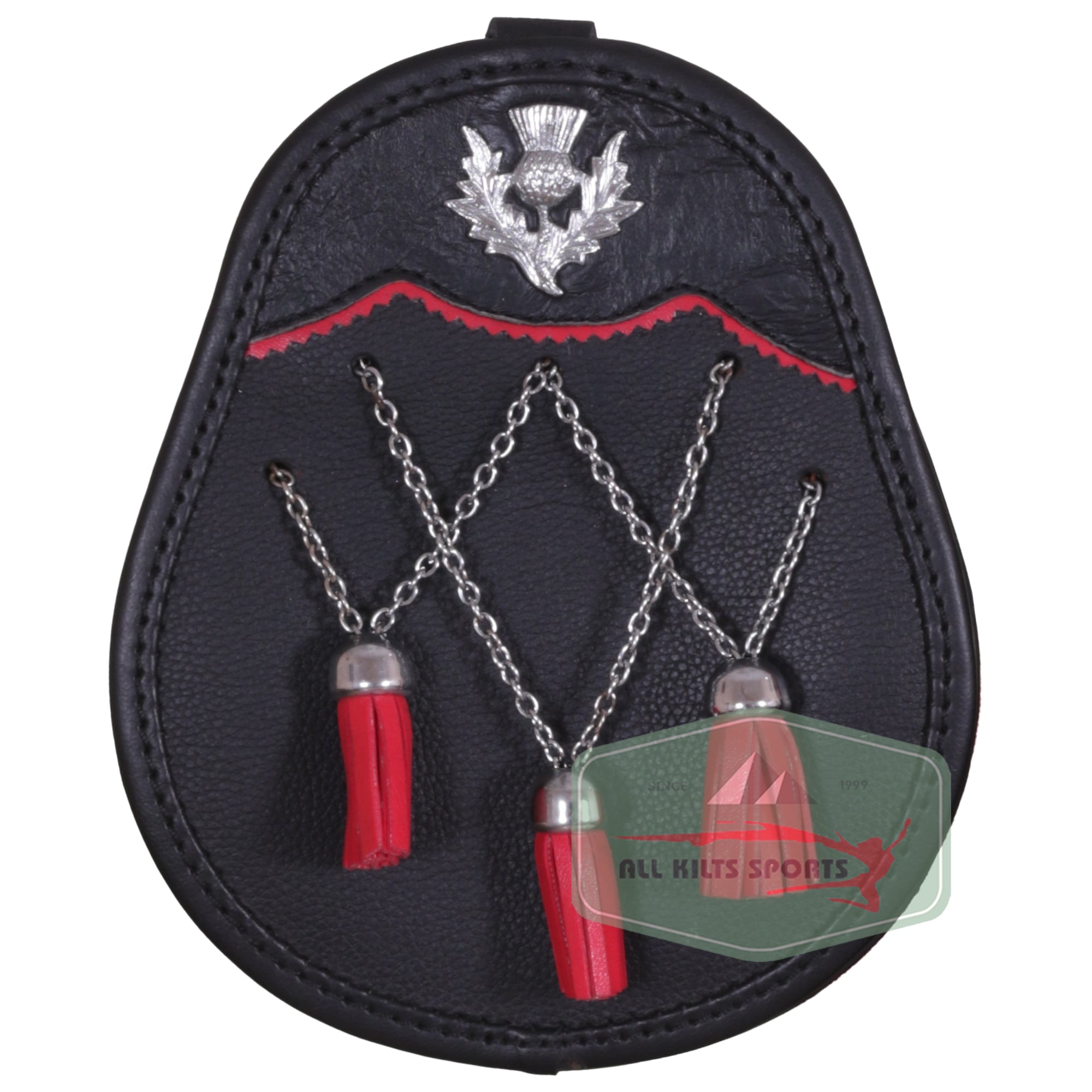 - Chain Detailing: The red tassels are elegantly suspended on silver-tone chains, giving the sporran a traditional and distinguished style.