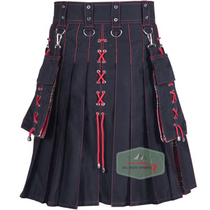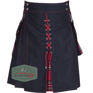 Black & Royal Stewart Tartan Hybrid Kilt | New Look | Custom Colors Available