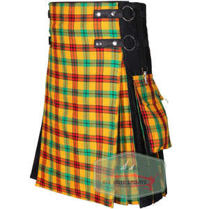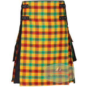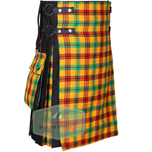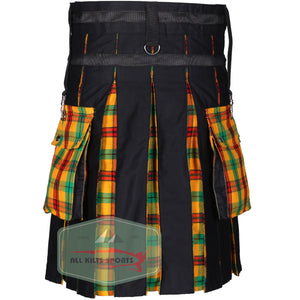 - Dynamic Design: Black utility kilt accented with McDuck Tartan on pleats, apron, and pockets for a bold look.