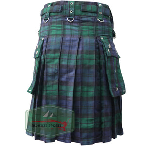 Black Watch Tartan Gothic Zipper Utility Kilt for Men – Available in Different Tartans