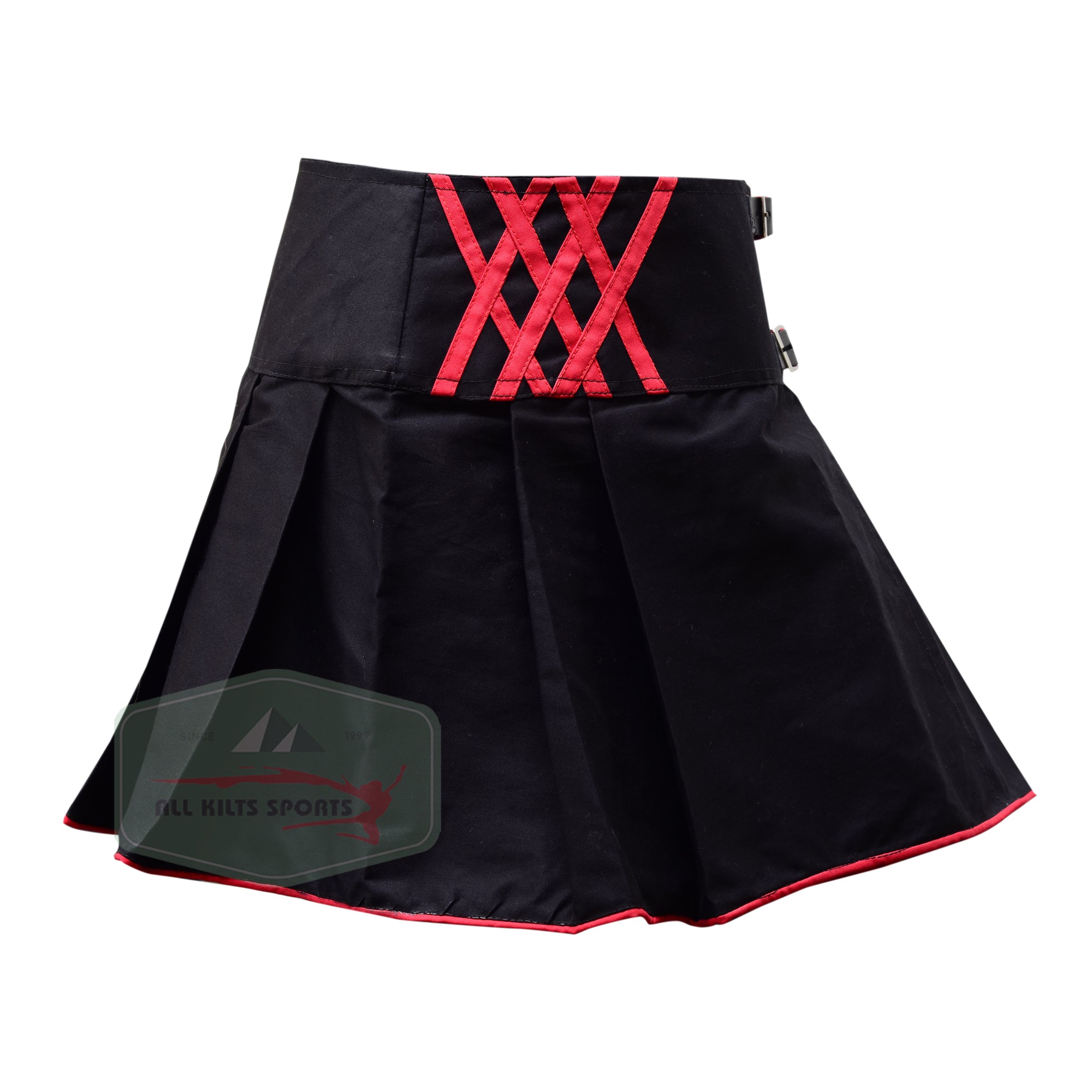 Black Women's Kilt/Skirt – 100% Cotton with Red Accents