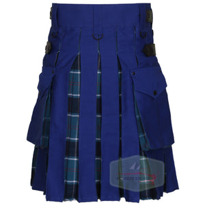 Blue & US Navy Tartan Fashionable Two-Tone Hybrid Kilt