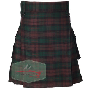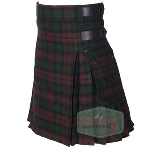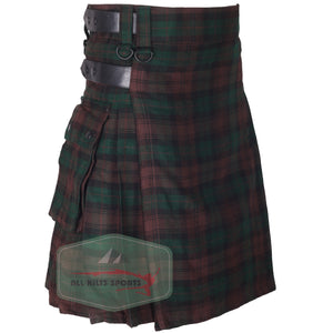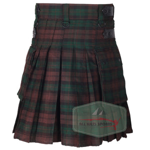 Brown Watch Utility Kilt with Leather Straps and Cargo Pockets