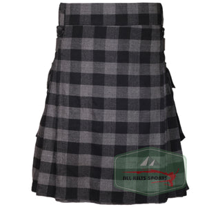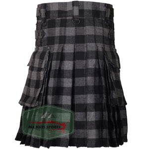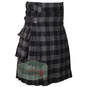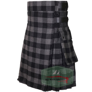 Buffalo Grey/Black Utility Kilt with Leather Straps and Cargo Pockets