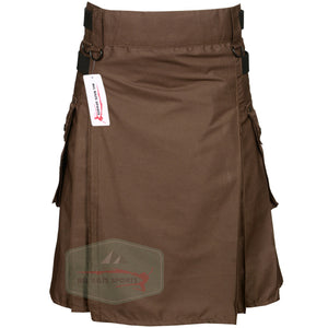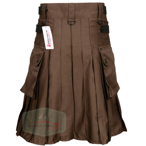 Chocolate Brown Utility Kilt with Genuine Leather Straps and Pockets