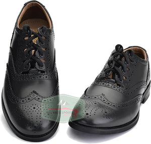 - Accessories include a pewter shamrock buckle, brooch, and kilt pin.