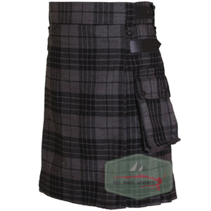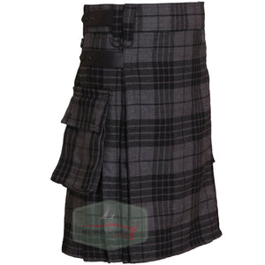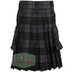 Dark Grey Highlander Utility Kilt with Leather Straps and Cargo Pockets