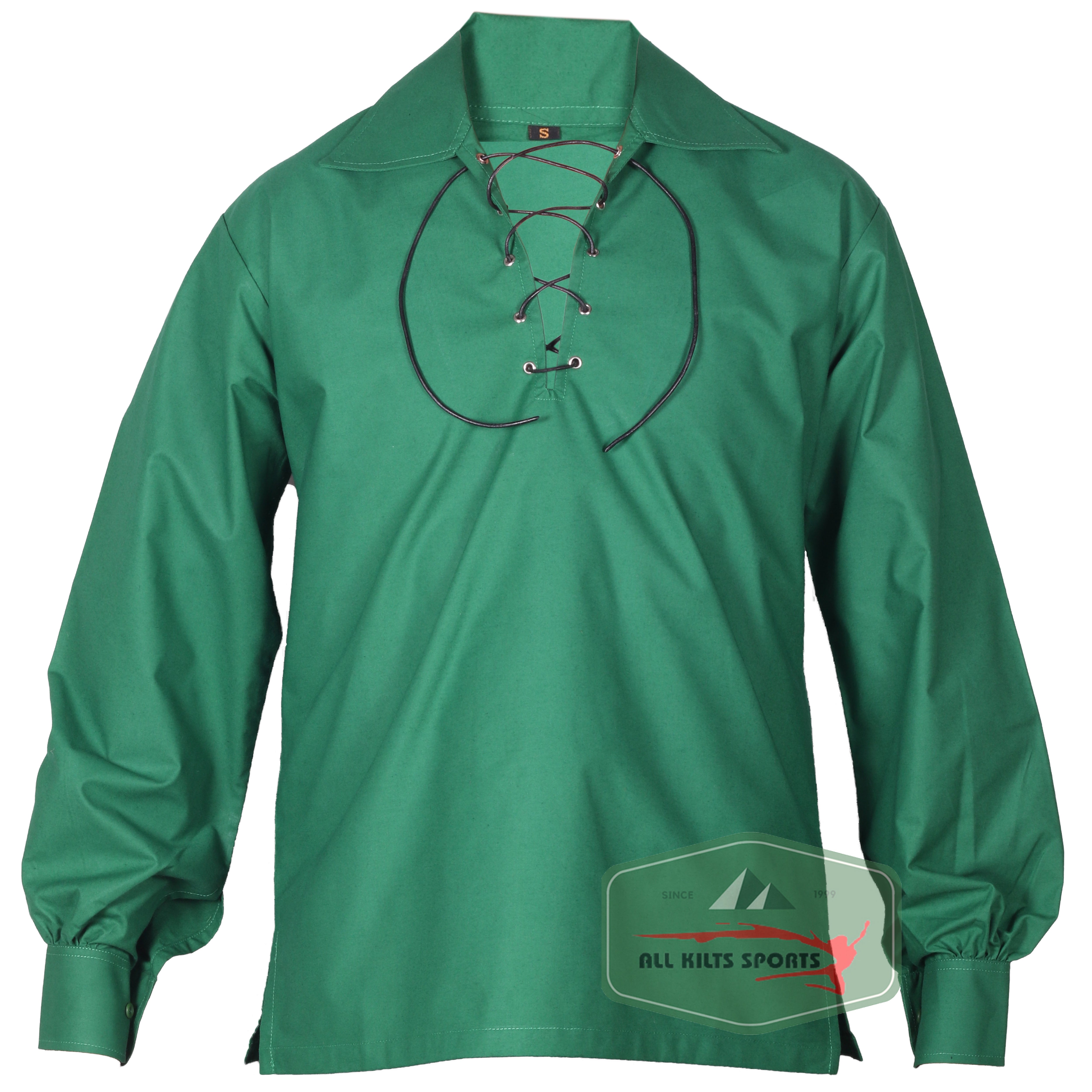 Green Jacobite Ghillie Kilt Shirt with Leather Lace-Up - Traditional Highland Style for Men