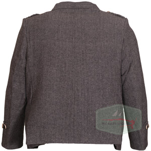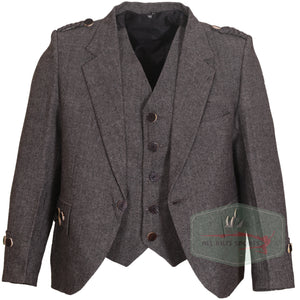 Grey Tweed Wool Argyle Kilt Jacket with 5 Button Waistcoat - Unique Stag Horn Buttons, Stylish Design, Customizable Fit