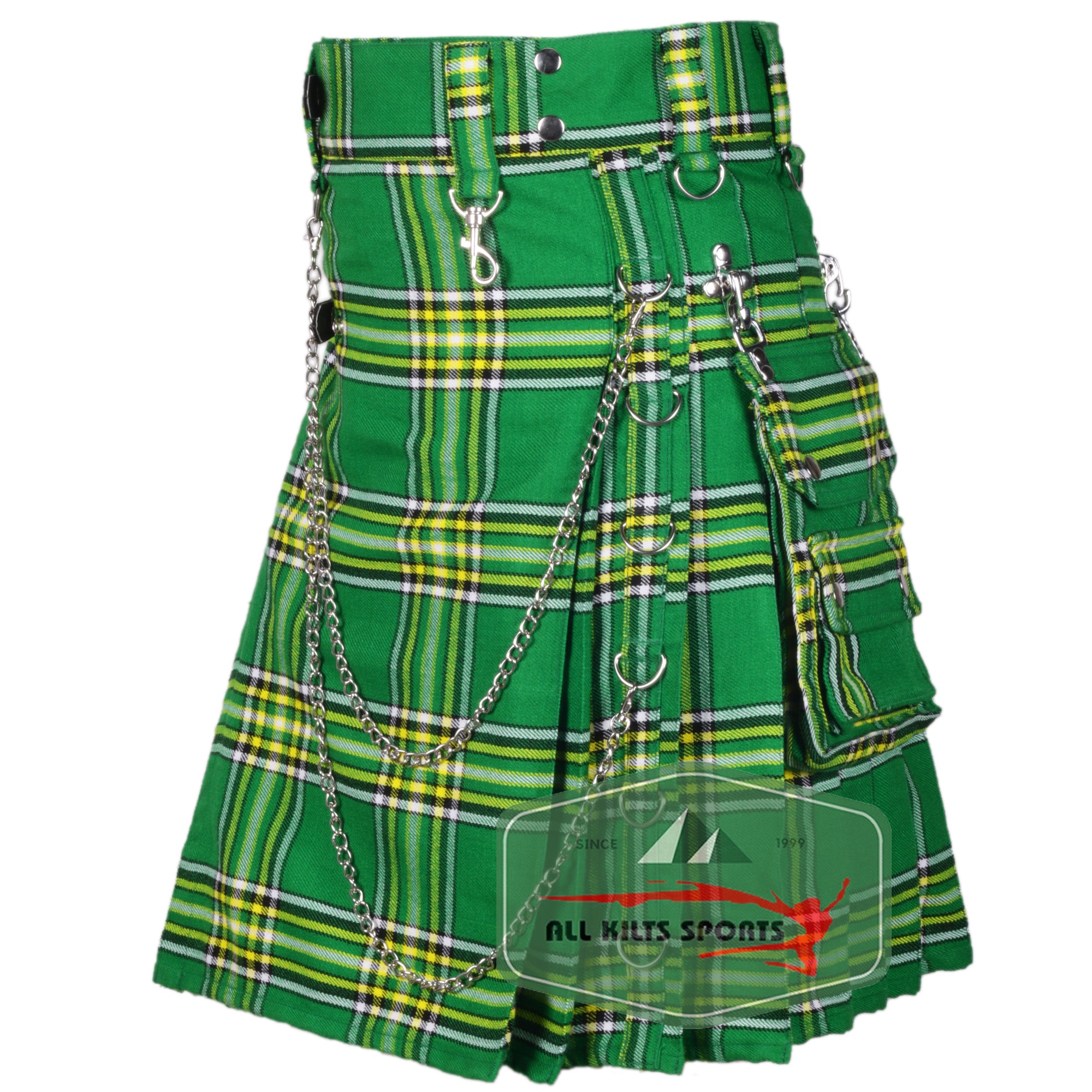 Irish heritage Tartan 16Oz Wedding Utility Kilt with Detachable Pockets – Comes in Different Tartans
