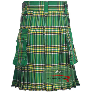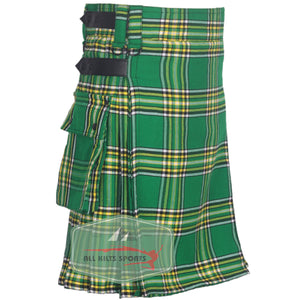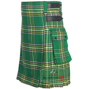Irish Heritage Utility Kilt with Leather Straps and Cargo Pockets