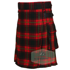 Irish Ulster Utility Kilt with Leather Straps and Cargo Pockets