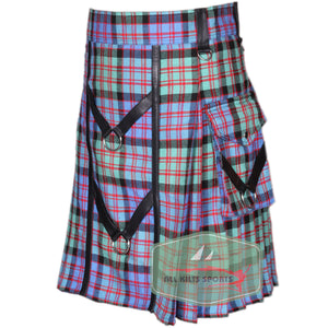 MacDonald Dress Ancient Tartan Utility Kilt - Adjustable with Leather Straps