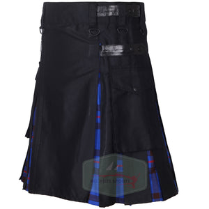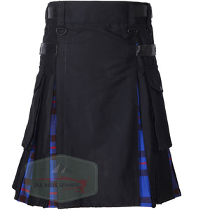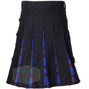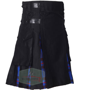 Men’s Black And In Pleats Elliot Modern Utility Kilt with Leather Straps and Cargo Pockets