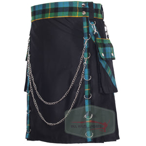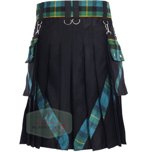 Men's V Style Gunn Ancient Pleats Utility Kilt with Detachable Pockets