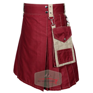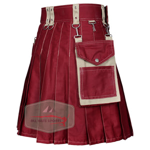 Modern Utility Kilt – Stylish Maroon and Khaki Design for Every Occasion