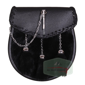 Premium Black Fur Sporran with Pin, Tassels, and Chain