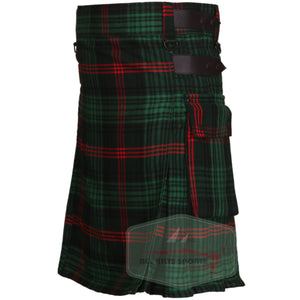Rose Hunting Utility Kilt with Leather Straps and Cargo Pockets
