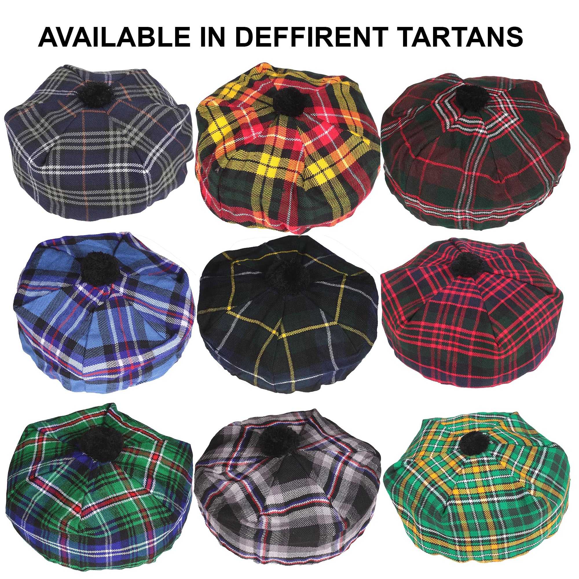 Scottish Traditional Tam o' Shanter Hat - 16Oz Acrylic Wool in Various Tartans