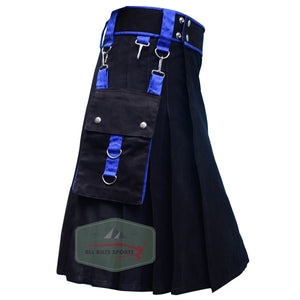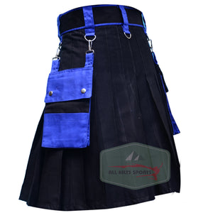 Stylish Black and Royal Blue Scottish Kilt for Men