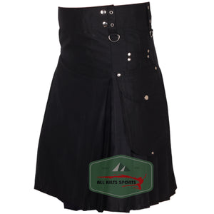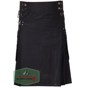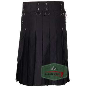 Stylish Black Cargo Utility Kilt with Two Large Pockets