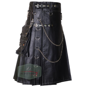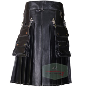 Stylish Black Genuine Cowhide Soft Leather Stud Kilt