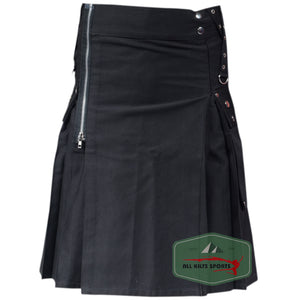 Stylish Black Gothic Zipper Utility Kilt for Active Men
