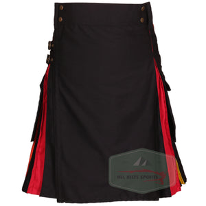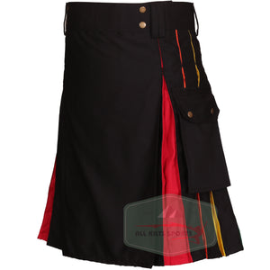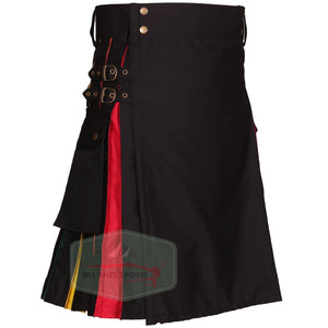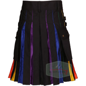 Stylish Black Rainbow Utility Kilt - Unique Rainbow Pleats, Durable 100% Cotton, Perfect for Any Occasion