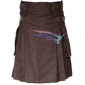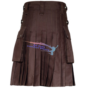 Chocolate Brown Stylish Heavy Drill Cotton Utility Kilt – Durable & Functional Design
