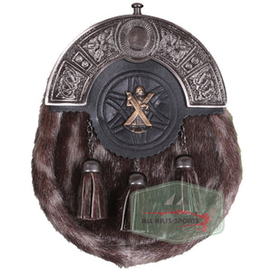 Traditional Fur Sporran with St. Andrew's Cross and Celtic Embossed Cantle