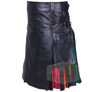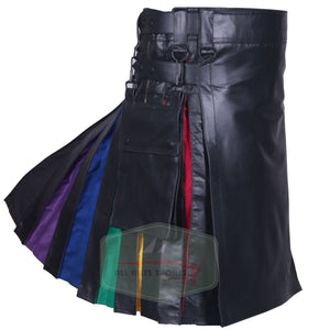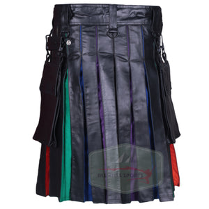Vibrant Rainbow Leather Straps Kilt with Detachable Pockets - Cowhide and Cotton Blend