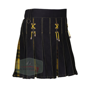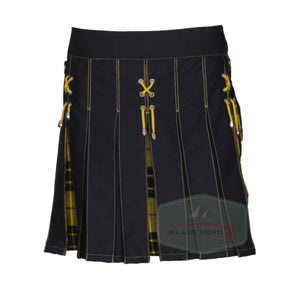 Women's Black & MacLeod of Lewis Hybrid Kilt with Stylish Pocket – 100% Cotton and 16oz Acrylic Wool Tartan Pleats