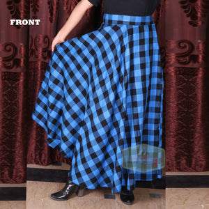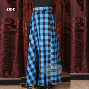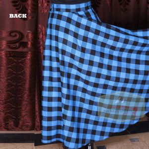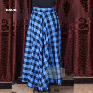 - Stylish long plaid skirt for women, perfect for casual or formal wear.