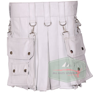 Women's White Leather Kilt with Detachable Pockets and Chain – Genuine Cowhide